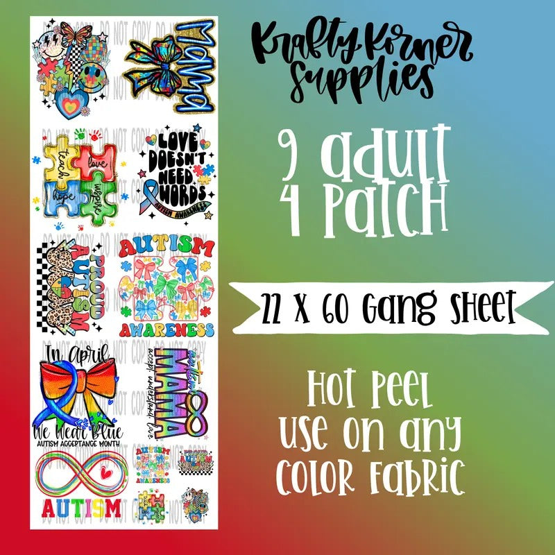 Autism DTF Transfer Gang Sheet, 22 x 60