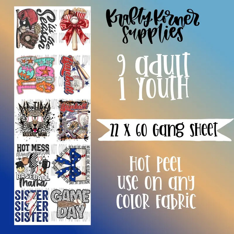 Baseball 3.0 DTF Transfer Gang Sheet, 22 x 60