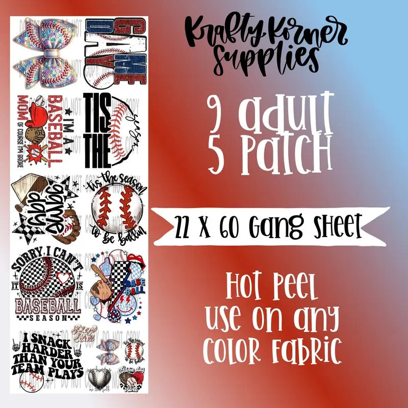 Baseball DTF Transfer Gang Sheet, 22 x 60
