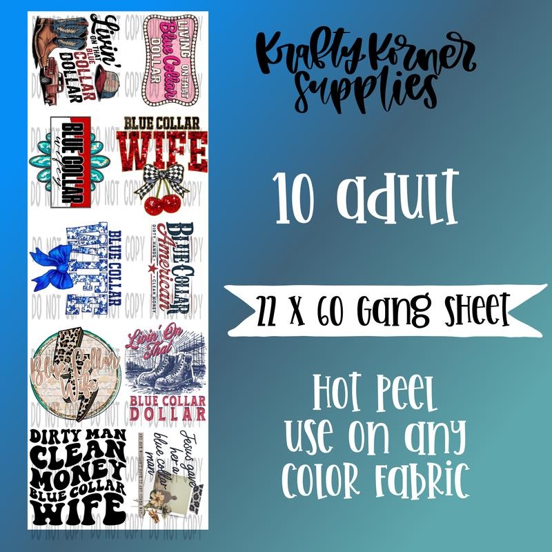 Blue Collar DTF Transfer Gang Sheet, 22 x 60