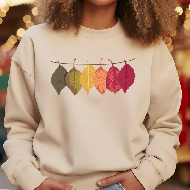 Botanical Casual Tee , Fall Leaf Shirt for Woman, Plant Lady Shirt, Fall Tees, Thanksgiving Sweatshirt, Thanksgiving Hoodie Fit Knit Cotton Fabric