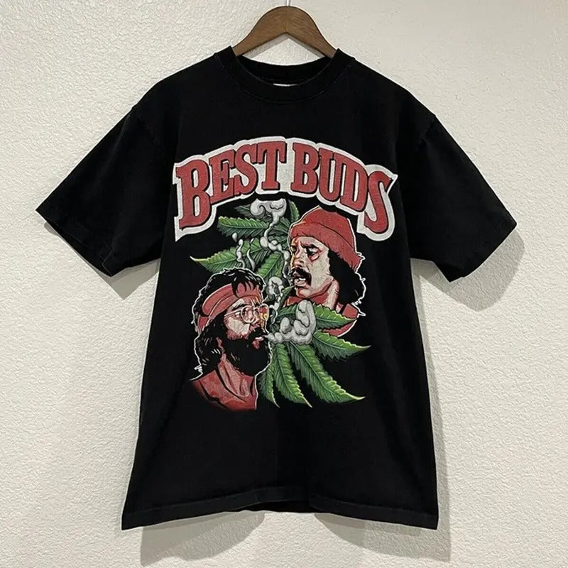 Cheech Chong Shirt Adult Black Best Buds Mens Women Casual Crewneck Tshirt