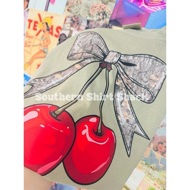 Cherrybomb Camo Bow T shirt | Khaki comfort colors t shirt | Cute Camo T shirt | Comfort Colors Shirt