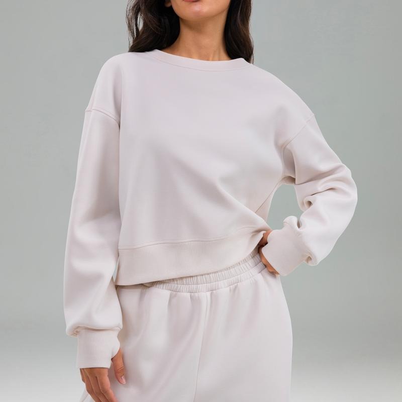 Colorfulkoala Women's Velvra Fleece Sweatshirt Retro Loose Fit Crew Neck Drop Shoulder Pullover Sweatshirt Modal Fleece Thumbhole Cuffs