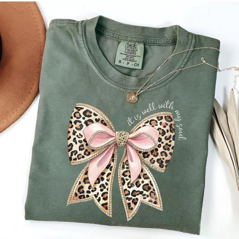 Comfort Colors It Is Well With My Soul Shirt, Pink Coquette Bow Religious Shirt, Coquette Bible Verse T-Shirt, Coquette Christian Girl Gifts