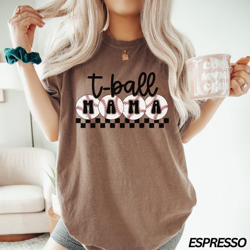 Comfort Colors Mama T-Shirt, Checkered Mama T-Shirt, Mothers Day Gift, Sports Mom, Cute Mom T-Shirt, Tball Mom T-Shirt
