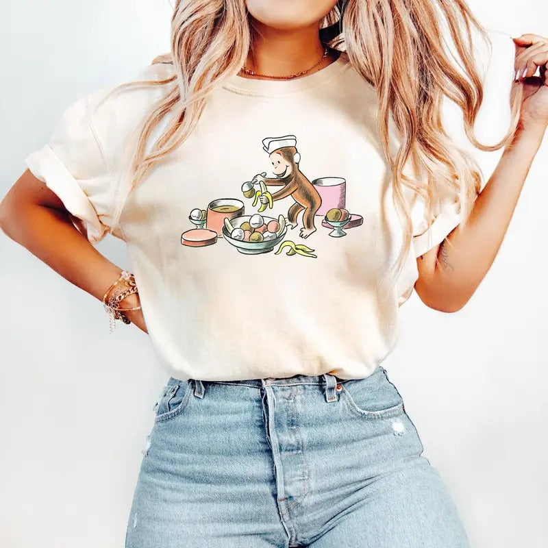 Curious George Unisex TShirt, vintage cartoons, baking, Pinterest, 90s style Unisex TShirt, comics, soft girl, ahs style, nostalgia