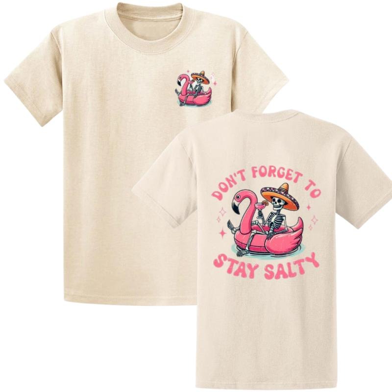 Don't Forget To Stay Salty Shirt, Salty Skeleton Sweatshirt, Two Sided Beach Holiday Hoodie, Funny Skeleton Beach T-shirt, Summer Trip 2024 Tee