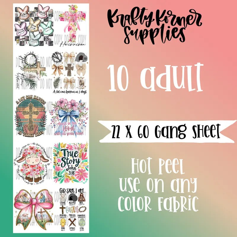 Faith Easter DTF Transfer Gang Sheet, 22 x 60