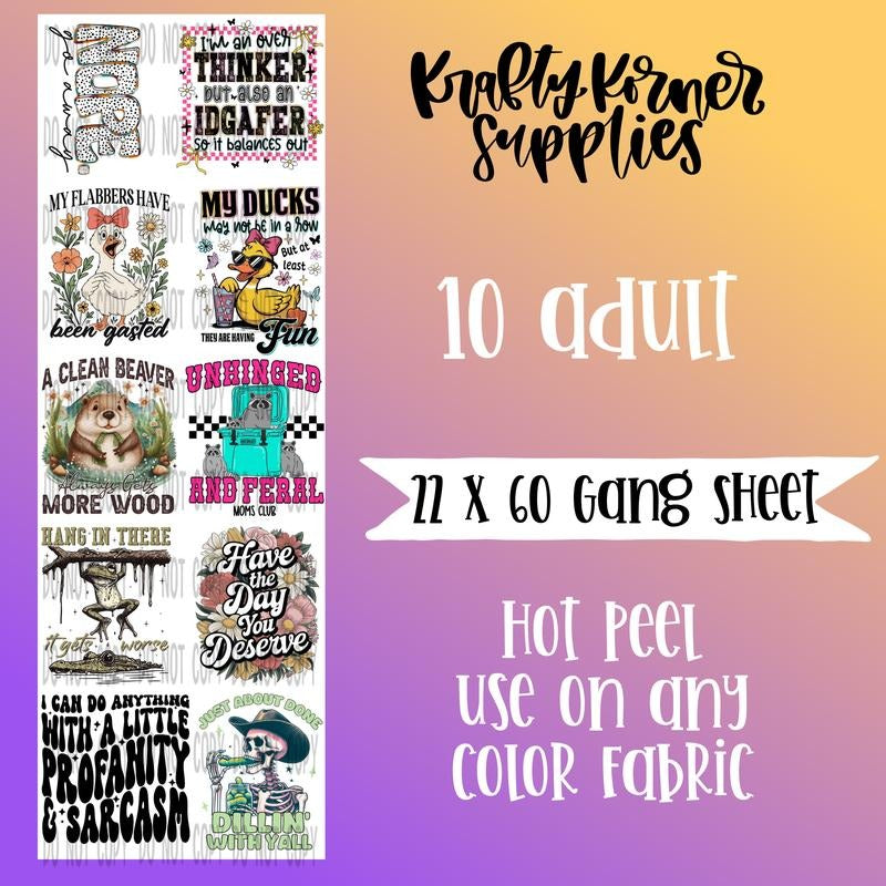 Funny 2.0 DTF Transfer Gang Sheet, 22 x 60