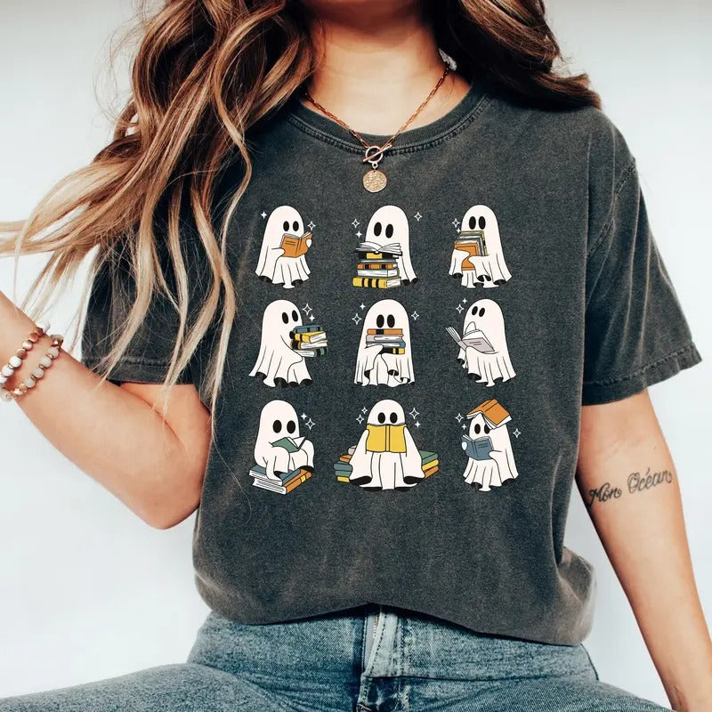 Ghost Reading Books Shirt, Bookish Halloween Shirt Comfort Colors, Teacher Librarian Halloween Gift, Halloween Book Lover, Halloween School