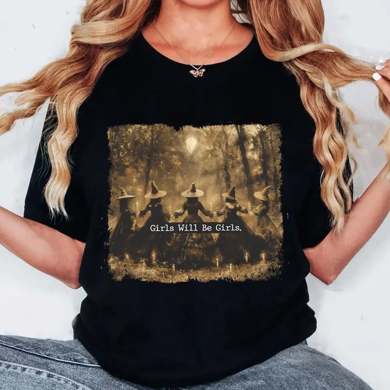 Girls Will Be Girls Witch Tshirt, Funny Witch Tee, Halloween Women, Witchy Vibes Shirt, Unisex Short Sleeve Tee Shirt, Womenswear