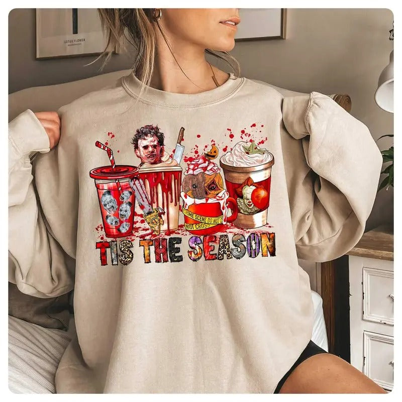 Halloween Pennywise Sam Leather Face Coffee Shirt Tis The Season Shirt Halloween Shirt Movie Shirt Spooky Season Shirt