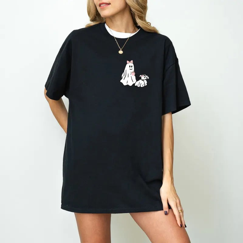 Halloween Pink Ghost T-shirt, Ghost Walking Dog Sweatshirt, Womens Halloween Sweater, Viral Ghost Walking Dog Shirt