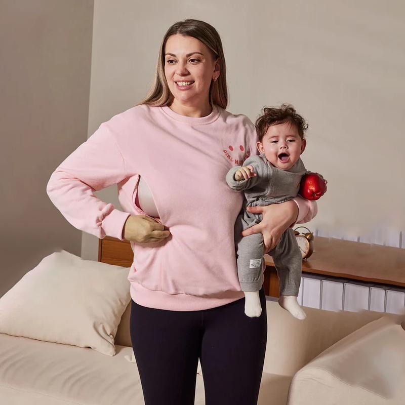 In My Girl Mom Era Breastfeeding Sweatshirt Women Causal Maternity Nursing Sweatshirt