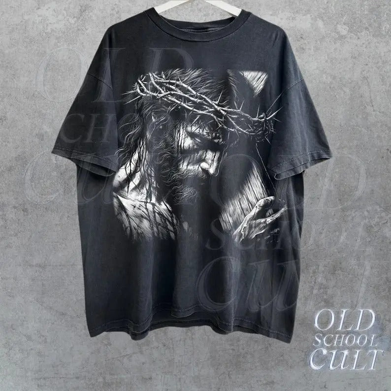 Jesus Holding Cross Vintage 90s Graphic Shirt, Retro Faith Jesus Shirt, Christian Shirt, Retro Halftone Graphic Bible Tee, Be The Light