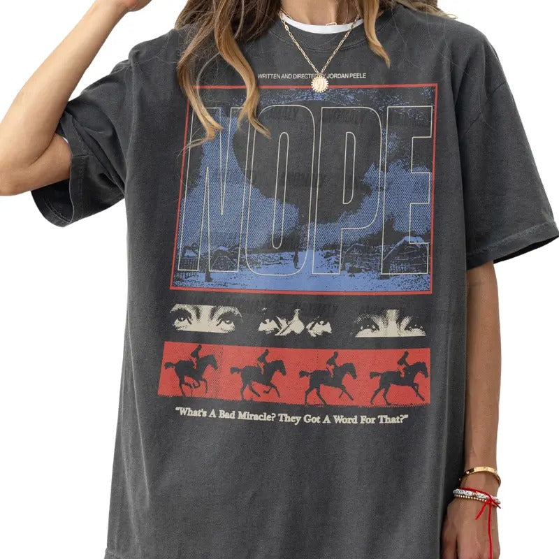 Nope Movie Inspired UFO Alien Sci-Fi Horror Film Shirts, Cotton Unisex T-Shirt, Crew Neck, Size S- 3XL, Menswear Top, Womenswear Top Underwear Streetwear