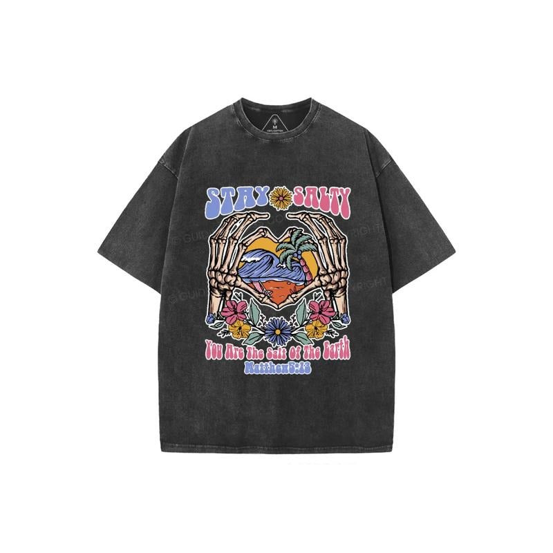 Stay Salty Christian Washed T-Shirt Pure Cotton Fabric Casual Streetstyle Crew Neck Short Sleeve Soft-Washed T-Shirt Trendy Tops for Women for Men, Perfect Gift