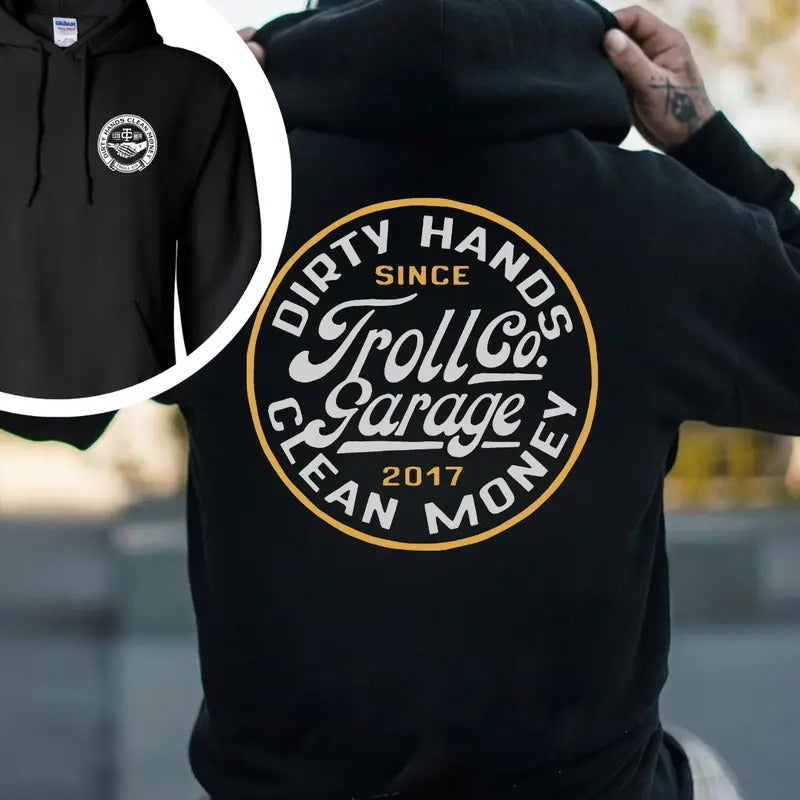 Troll Co Garage Workwear Dirty Hands Make Clean Money T-shirt - Crewneck Sweatshirt - Hoodie, Trending Mechanic Unisex Shirt, 2 Side Printed Streetwear