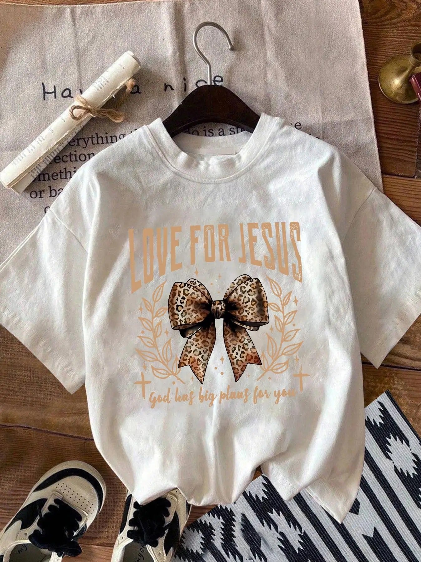 Women's Leopard Graphic Print Round Neck Tee, Fashion Casual Drop Shoulder Short Sleeve T-shirt, Ladies Spring & Fall Clothes for Daily Wear
