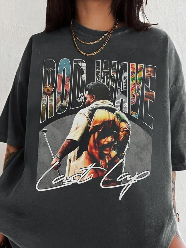 Women's Rod Wave Graphic Print Round Neck Tee, Fashion Casual Short Sleeve T-shirt, Ladies Summer Clothes for Daily Wear, Top